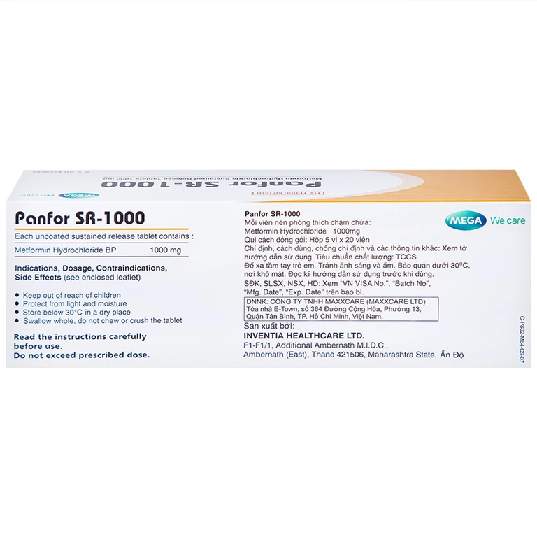 Panfor SR-1000 sau khi dùng bằng đường uống đạt nồng độ đỉnh trong máu sau 7 giờ, trong khoảng 4 – 8 giờ. Sau khi dùng liều lặp lại dạng phóng thích chậm, metformin không tích lũy trong huyết tương. Mặc dù thời gian hấp thu của metformin dạng phóng thích chậm tăng gần 50% khi dùng chung với thức ăn nhưng không ảnh hưởng đến Cmax và Tmax.