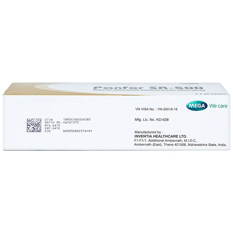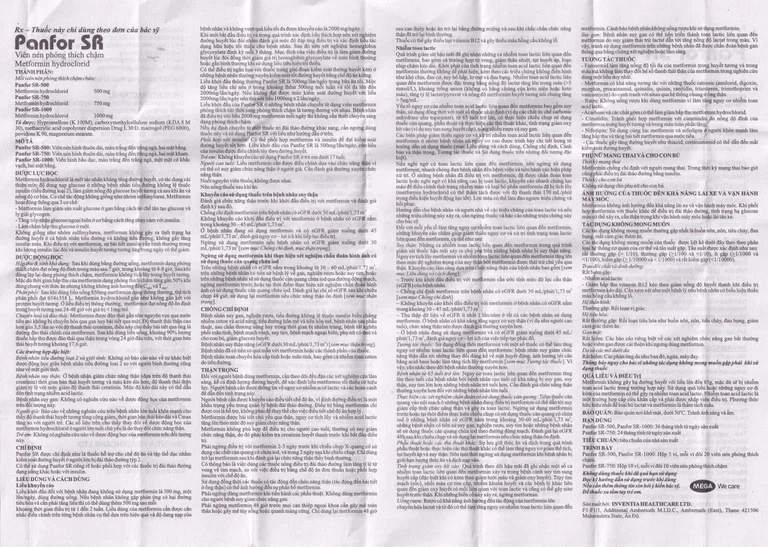 Panfor SR 500 là thuốc điều trị đái tháo đường, viên hình bầu dục, màu trắng đến trắng ngà, một mặt có khắc vạch, hai mặt bằng. “SR” là chữ viết tắt của “slow release” nghĩa là phóng thích chậm.