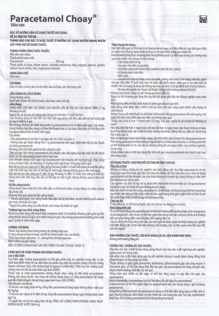 Cách dùng Viên nén Paracetamol Choay 500mg