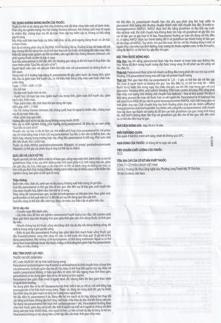 Liều dùng là mỗi lần uống một viên 500mg, nếu cần có thể lặp lại mỗi 4 giờ, nhưng không quá 6 viên mỗi ngày.