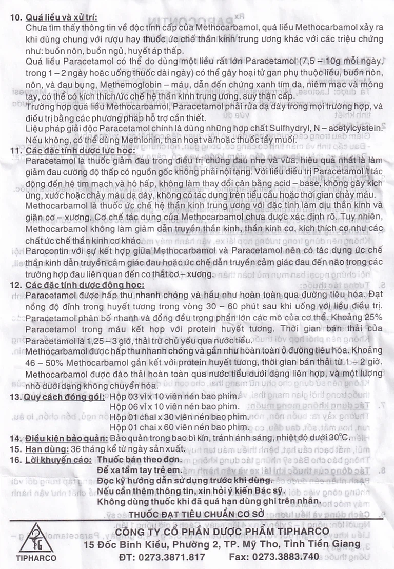 Liều khuyến nghị đối với Methocarbamol từ 3,2 g – 4,8 g/ngày, Paracetamol: 2,6 g – 3,9 g/ngày.