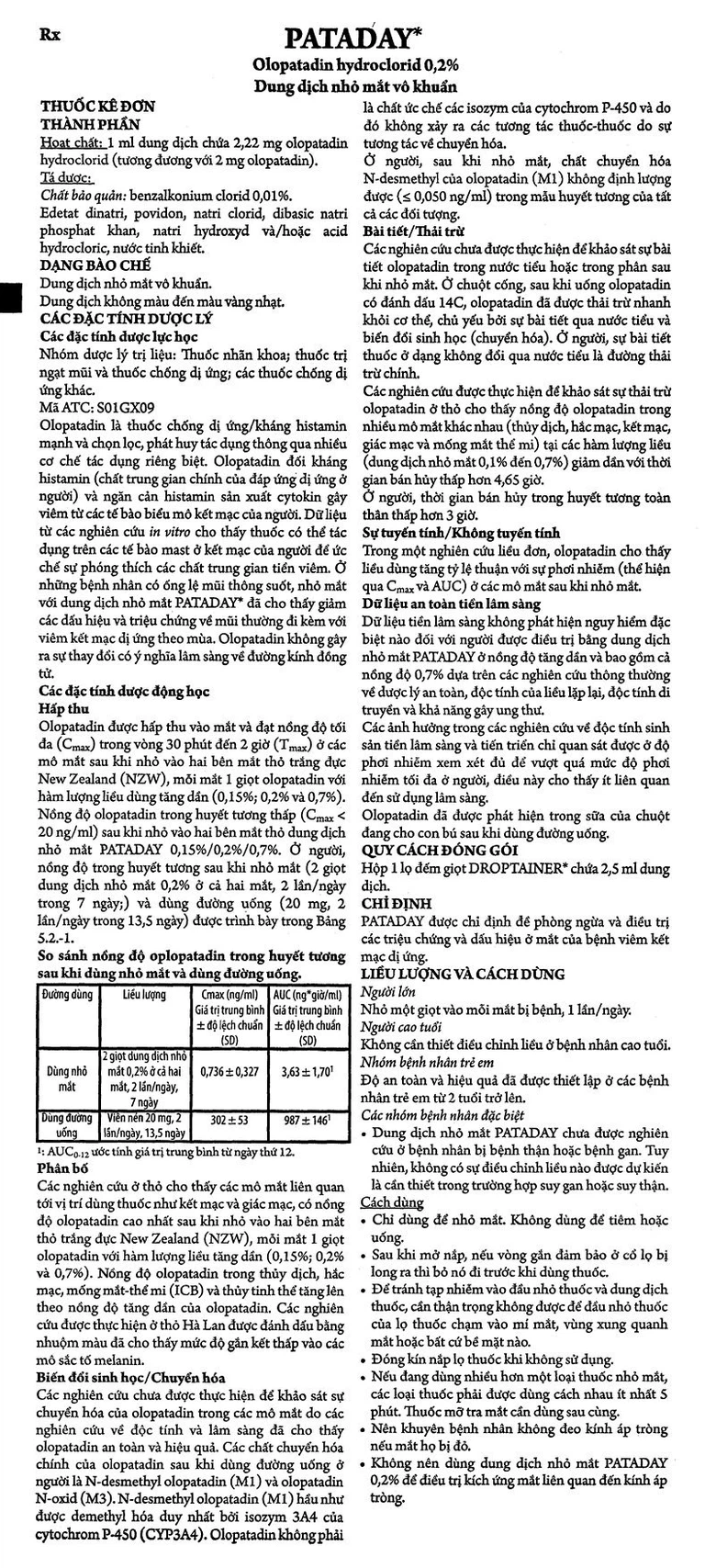 Dung dịch nhỏ mắt Pataday là một thuốc chống dị ứng/kháng histamin và mặc dù được dùng nhỏ mắt, thuốc vẫn được hấp thu toàn thân.