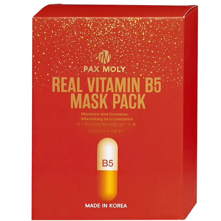 Mặt nạ dưỡng da Pax Moly Real Vitamin B5 Mask Pack giúp da mềm mịn, giúp dưỡng ẩm da, làm dịu da.
