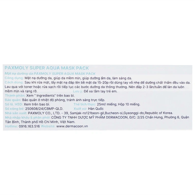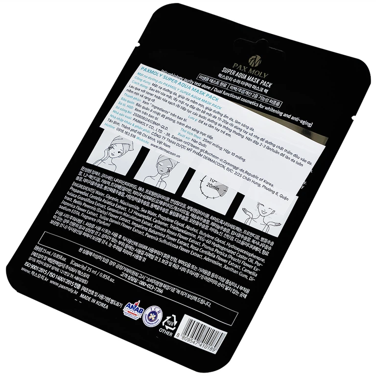 Mặt nạ dưỡng da Pax Moly Super Aqua Mask Pack giúp da mềm mịn, giúp dưỡng ẩm da, làm sáng da.