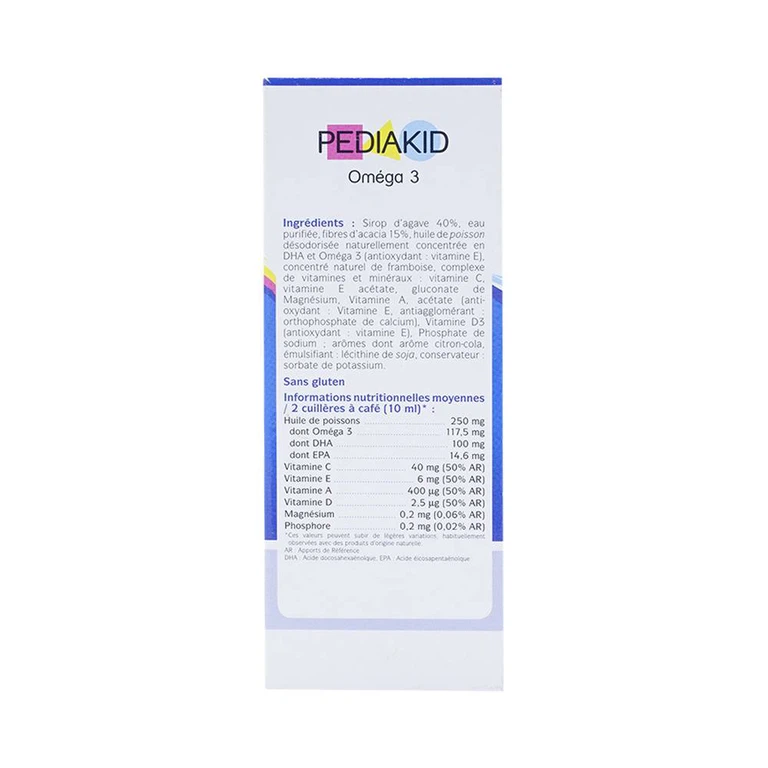 Siro bổ sung Omega 3 và DHA PediaKid Oméga 3 giàu axit béo Omega 3, bao gồm DHA, Omega 3 PEDIAKID ® tối ưu hóa chức năng nhận thức (bộ nhớ, sự tập trung, tầm nhìn…). Sản phẩm mang đến cho trẻ một giải pháp tự nhiên để tránh được những rối loạn về khả năng tập trung và hiếu động thái quá và thúc đẩy mạnh các chức năng phát triển trí tuệ.