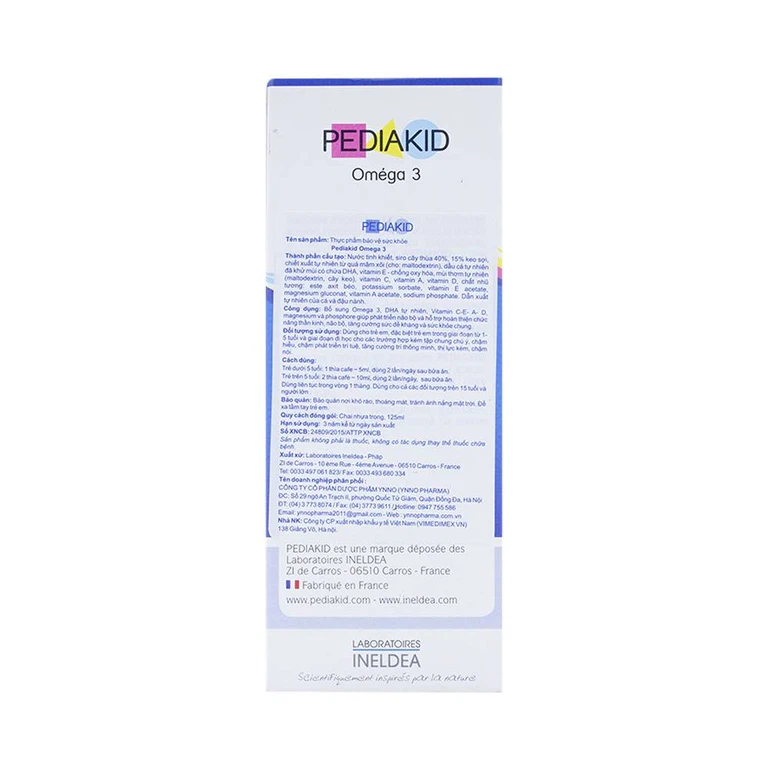 Pediakid Omega 3 bổ sung Omega 3, DHA tự nhiên, Vitamin C-E-A-D, magnesium và phosphore giúp phát triển não bộ và hỗ trợ hoàn thiện chức năng thần kinh, não bộ, tăng cường sức đề kháng và sức khỏe chung.