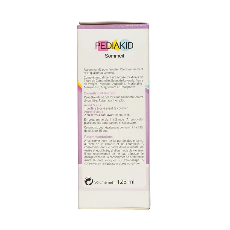 Pediakid Sommeil giúp an thần, thư giãn hệ thần kinh làm cho giấc ngủ sâu và ngon, tạo sự yên bình và thoải mái cho giấc ngủ. Sản phẩm thích hợp dùng cho trẻ từ giai đoạn ăn dặm trở đi, cho cả các đối tượng trên 15 tuổi và người lớn.