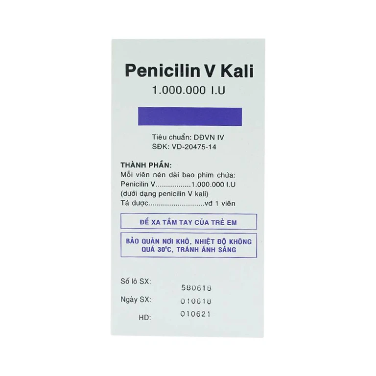Penicilin V Kali 1000.000là một chế phẩm của Penicilin V bền vững với acid dịch vị nên được dùng đường uống.