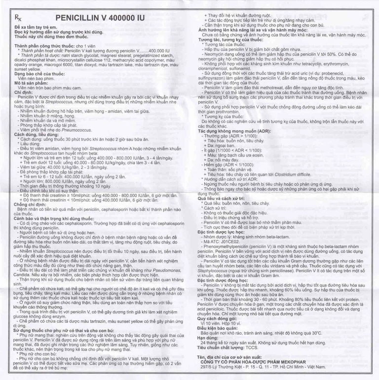 Cách dùng Thuốc Penicillin V 400000 IU