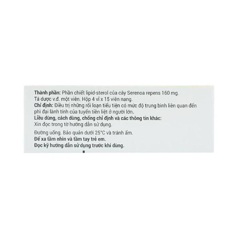 Phần chiết lipid-sterol của cây Serenoa repens | 160mg |