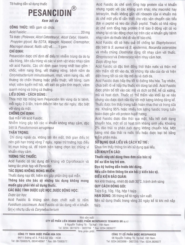 Thoa một lớp mỏng kem Pesancidin®lên vùng da bị bệnh, mỗi ngày 2 – 3 lần, tránh điều trị liên tục dài ngày, đặc biệt với vùng da mặt.