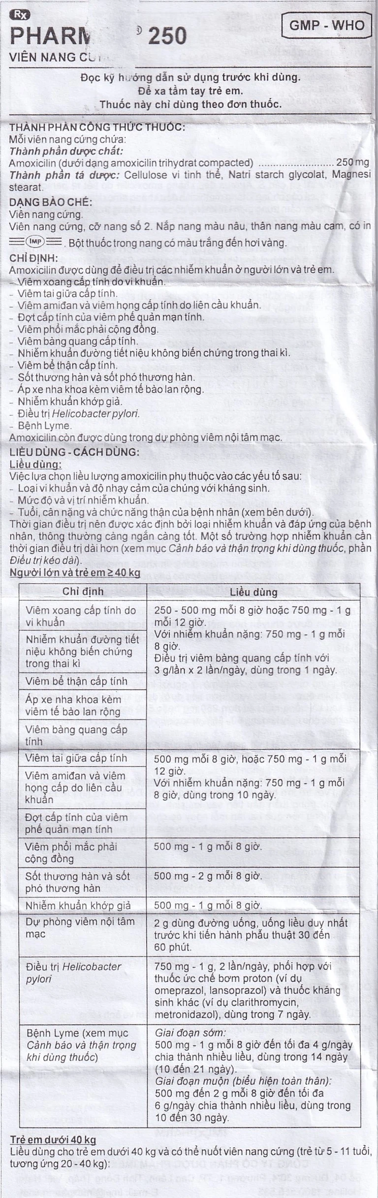 Pharmox 250 chống chỉ định trong các trường hợp: