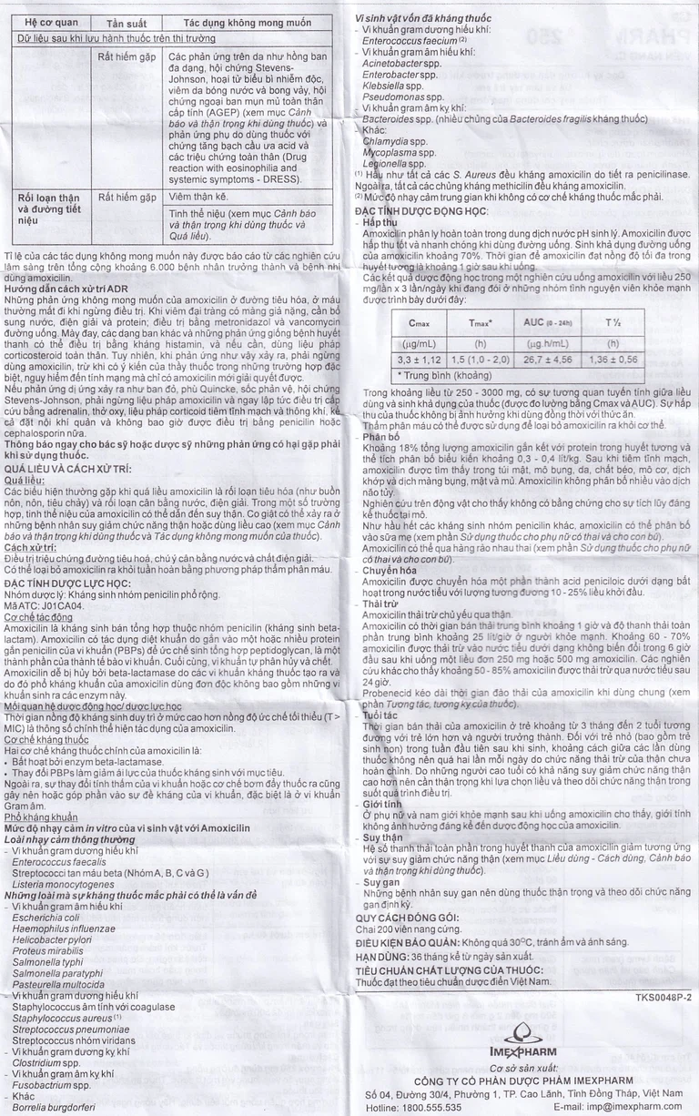 - Sư xuất hiện của sốt phát ban toàn thân kèm mụn mủ khi mới bắt đầu điều trị có thể là triệu chứng của hội chứng ngoại ban mụn mủ toàn thân cấp tính (Acute Generalized Exanthematous Pustulosis – AGEP, xem mục tác dụng không mong muốn của thuốc). Trong trường hợp này, cần phải ngừng amoxicillin và chống chỉ định sử dụng amoxicillin cho các trường hợp sau này.