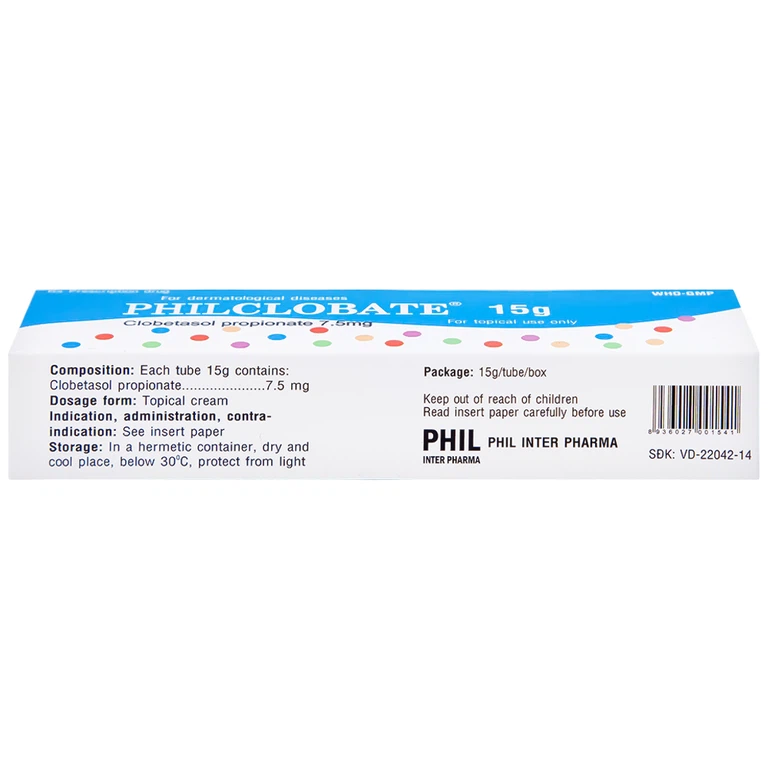 Thuốc PHILCLOBATEđược chỉ định dùng trong trường hợp sau: Dùng trong những bệnh ngoài da như: Viêm da, chàm, chàm dị ứng, viêm da do dị ứng và viêm da do tiếp xúc với ánh sáng mặt trời.