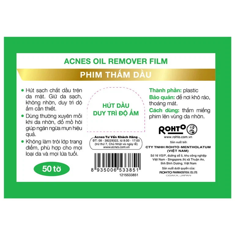 Phim thấm dầu – Acnes Oil Remover Film hút dầu nhanh, đặc biệt phim chỉ hút dầu không hút mồ hôi nên không gây ảnh hưởng đến độ ẩm của da, không làm trôi lớp trang điểm, khả năng hút dầu gấp 3 lần so với các loại giấy thấm dầu thông thường.