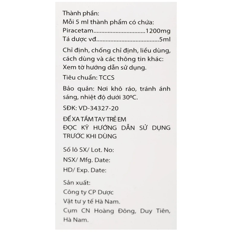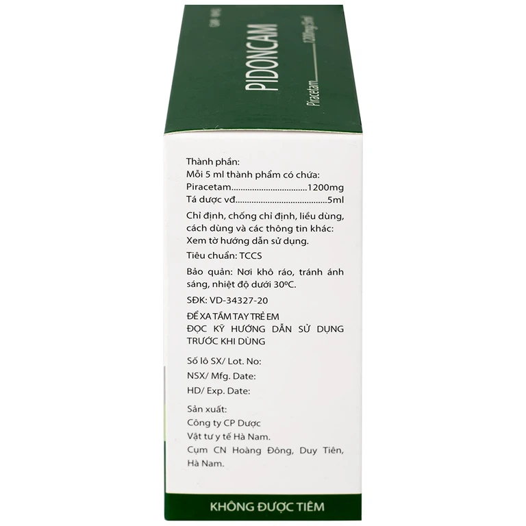 Thuốc Pidoncam 1200mg/5ml Hà Nam điều trị triệu chứng chóng mặt, suy giảm trí nhớ (20 ống x 10ml)