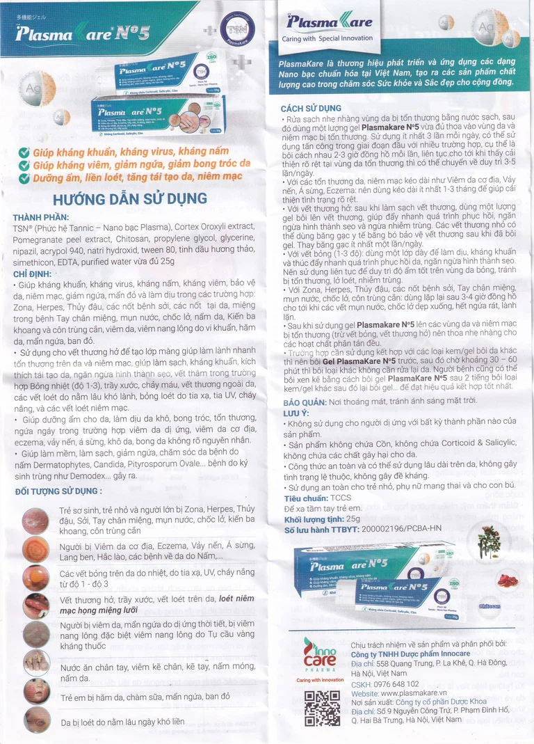 Thành phần của Kem bôi da Plasmakare Nº5 Innocare 25g
