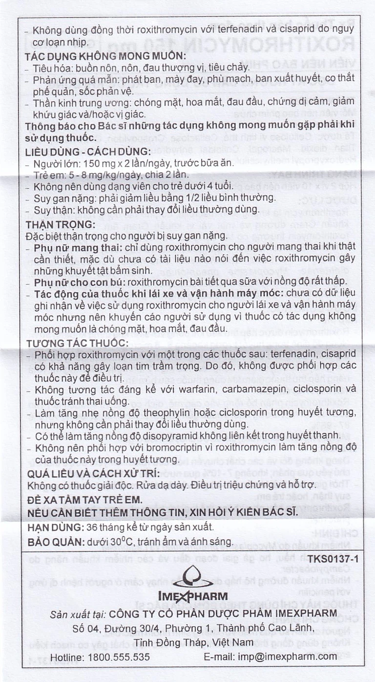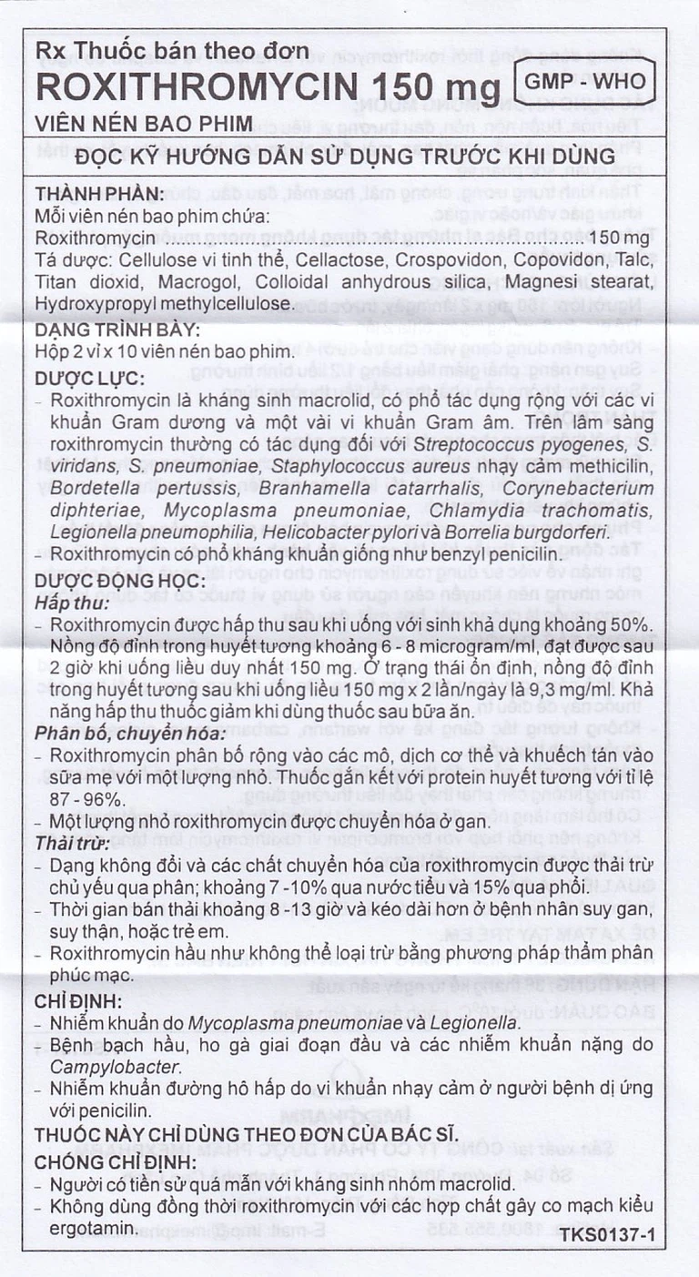 Pms – Roxithromycin 150Mg của công ty Cổ phần Dược phẩm Imexpharm, có thành phần chính roxithromycin, là thuốc dùng để điều trị các nhiễm khuẩn do các vi khuẩn nhạy cảm gây ra.