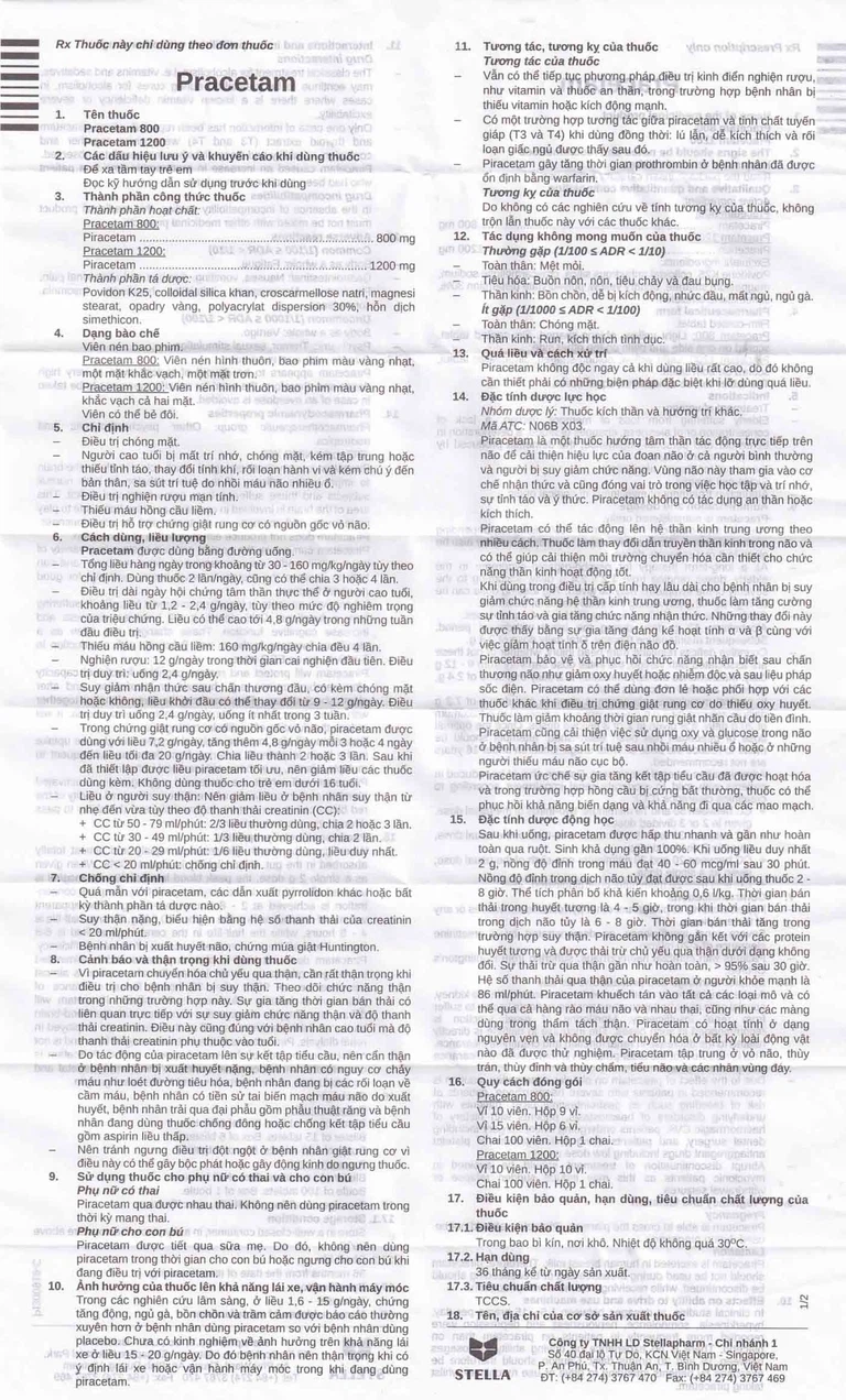 Công dụng của Viên nén Pracetam 800