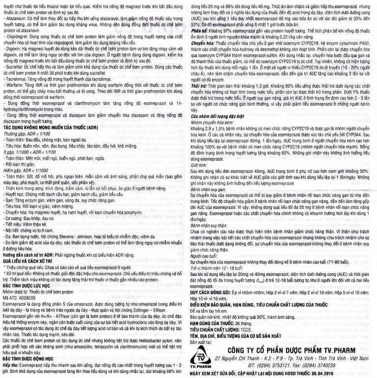 Thuốc Prazopro 20 là sản phẩm của Dược phẩm TV. Pharm, với thành phần chính Esomeprazole, là thuốc dùng để điều trị loét dạ dày–tá tràng, bệnh trào ngược dạ dày–thực quản, hội chứng Zollinger–Ellison, xuất huyết do loét dạ dày–tá tràng nặng, sau khi điều trị bằng nội soi. Thuốc còn dùng để phòng và điều trị trong trường hợp loét dạ dày–tá tràng do dùng thuốc kháng viêm không steroid và loét do stress.Thuốc Prazopro 20 dạng viên nang cứng số 2, nắp và thân nang màu tím, nắp nang có in 3 vòng cung màu vàng, bên trong chứa các hạt được bao tan trong ruột màu trắng hay trắng ngà.