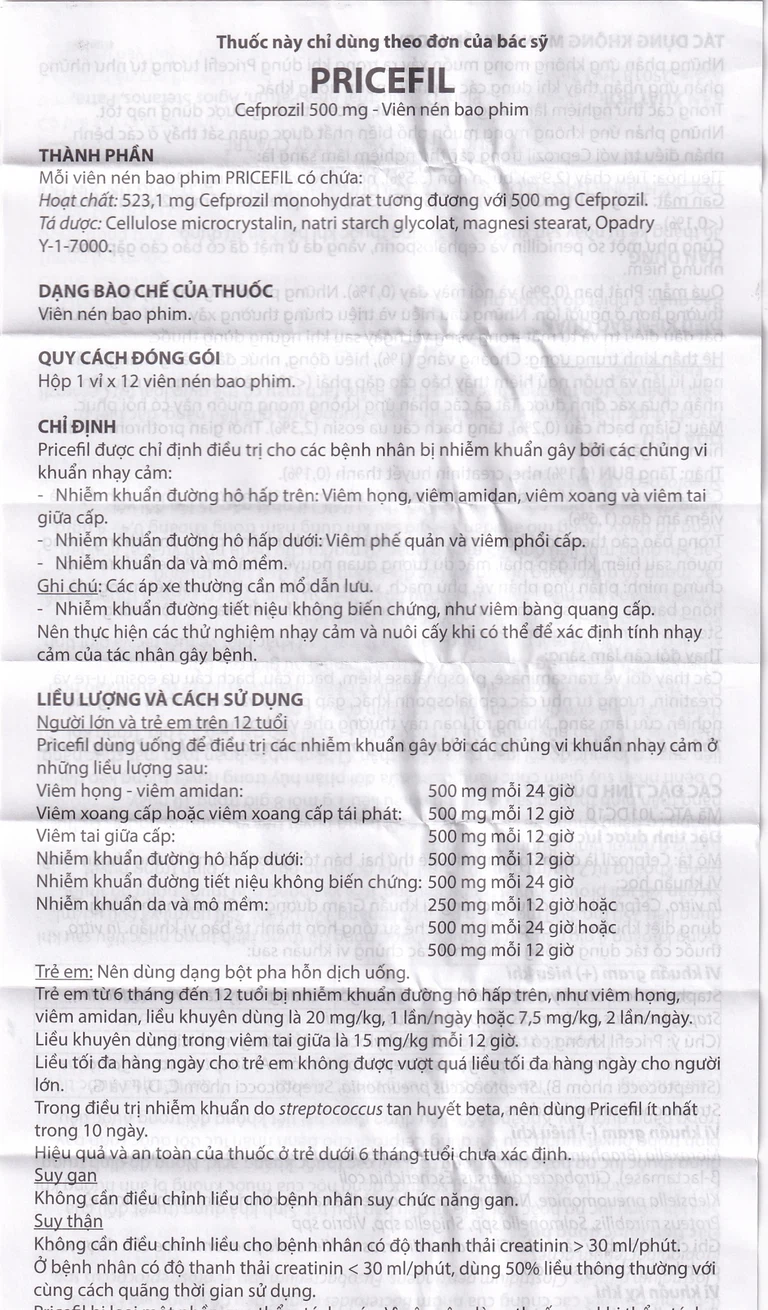 Chú ý: Pricefl không có tác dụng với staphylococci đề kháng methicillin.