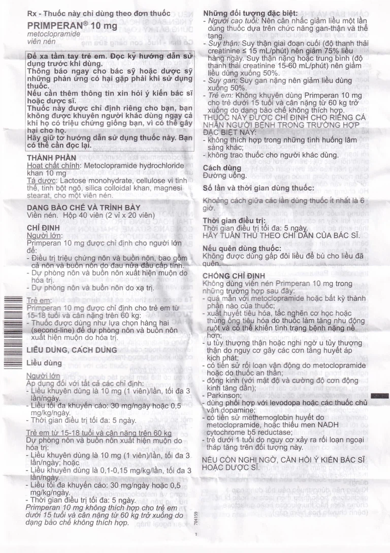 Không khuyên dùng Primperan 10 mg cho trẻ dưới 15 tuổi và cân nặng từ 60 kg trở xuống do dạng bào chế không thích hợp.