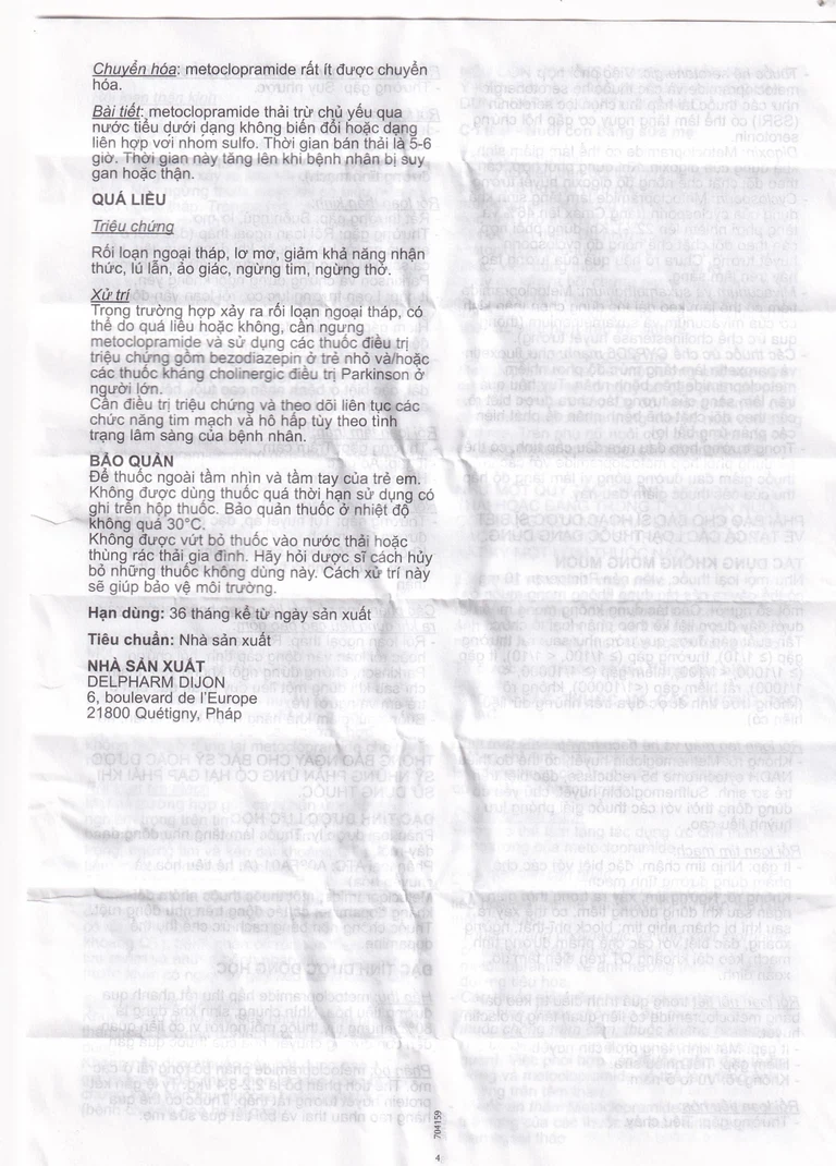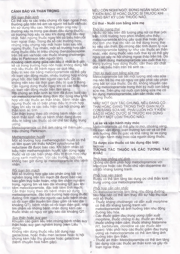 - Có tiền sử rối loạn vận động do metoclopramide hoặc do thuốc an thần.