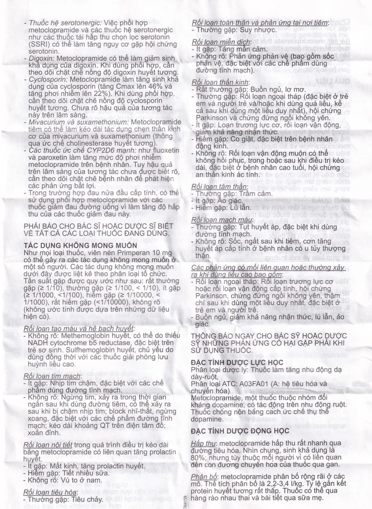 Khi sử dụng thuốc Primperan 10 mg, bạn có thể gặp các tác dụng không mong muốn (ADR).