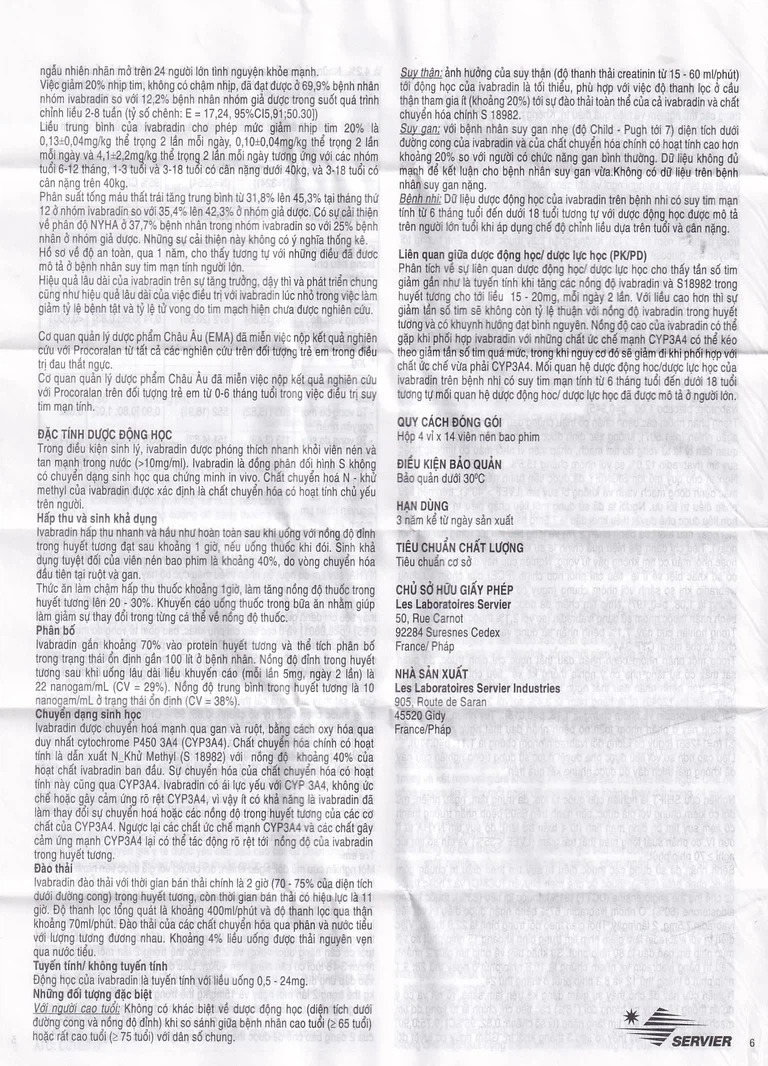 Bệnh nhi: Dữ liệu dược động học của ivabradin trên bệnh nhi có suy tim mạn tính từ 6 tháng tuổi đến dưới 18 tuổi tương tự với dược động học được mô tả trên người lớn tuổi khi áp dụng chế độ chỉnh liều dựa trên tuổi và cân nặng.