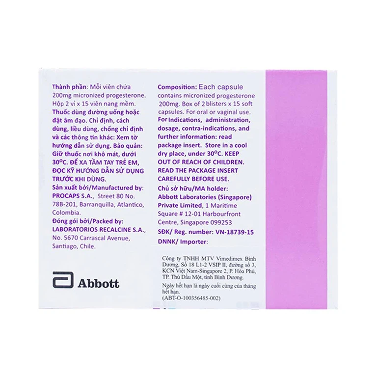 200mg x 1 lần/ngày, uống lúc đi ngủ trong suốt 12 ngày cuối của quá trình điều trị estrogen vào mỗi tháng.