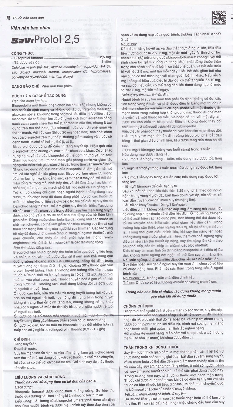 Thuốc Prolol Savi 2,5 được dùng đường uống.