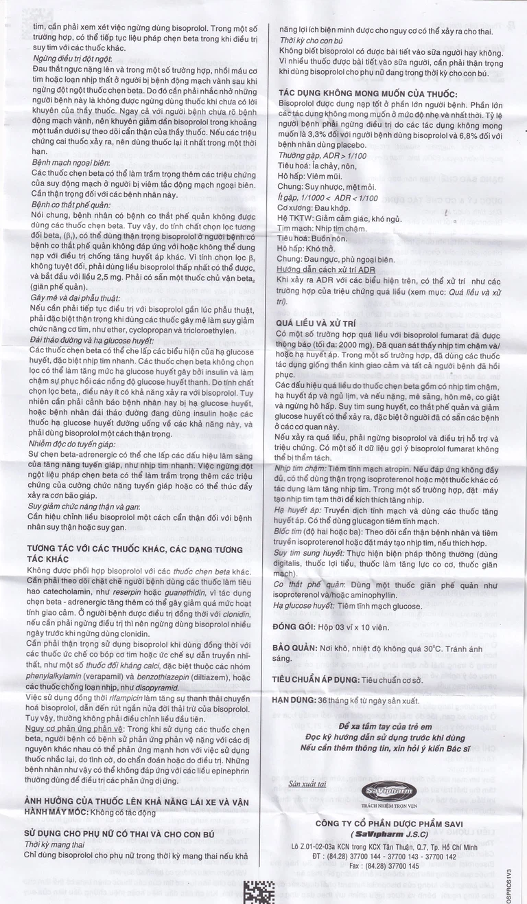 Có một số trường hợp quá liều với bisoprolol fumarat đã được thông báo (tối đa: 2000 mg). Đã quan sát thấy nhịp tim chậm và/hoặc hạ huyết áp. Trong một số trường hợp, đã dùng các thuốc tác dụng giống thần kinh giao cảm và tất cả người bệnh đã hồi phục. Các dấu hiệu quá liều do thuốc chẹn beta gồm có nhịp tim chậm, hạ huyết áp và ngủ lịm và nếu nặng, mê sảng, hôn mê, co giật và ngừng hô hấp. Suy tim sung huyết, co thắt phế quản và giảm glucose huyết có thể xảy ra, đặc biệt ở người đã có sẵn các bệnh ở các cơ quan này.