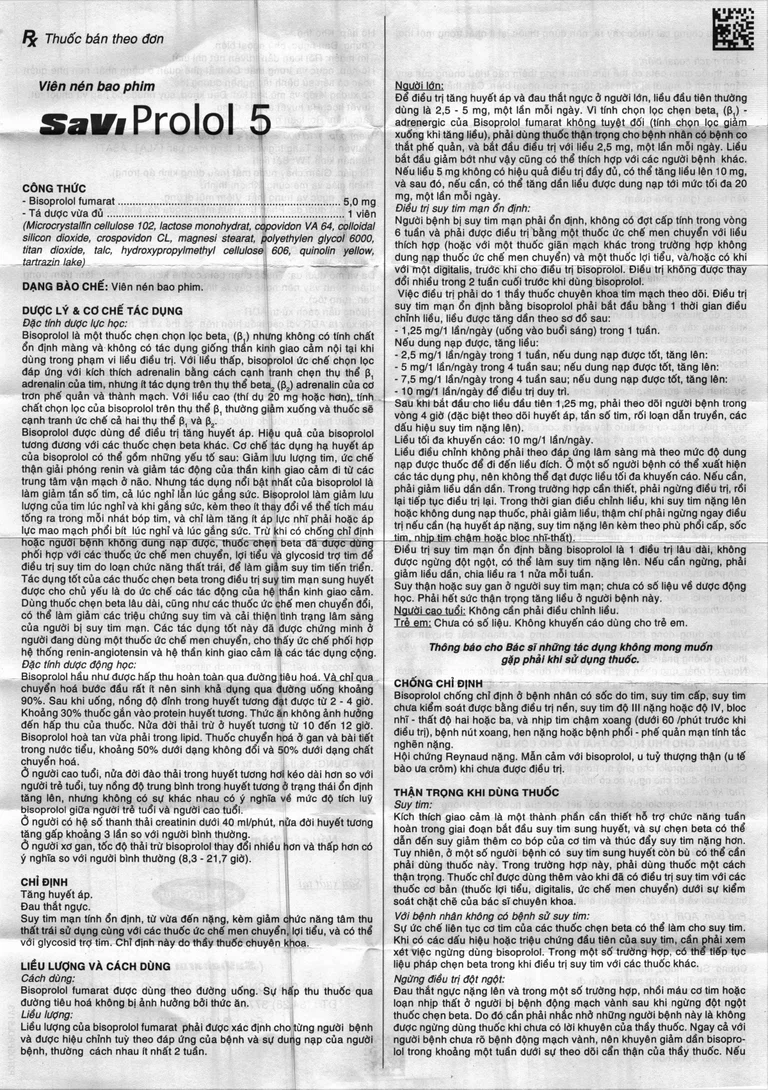Thuốc Prolol SaVi 5được dùng đường uống.