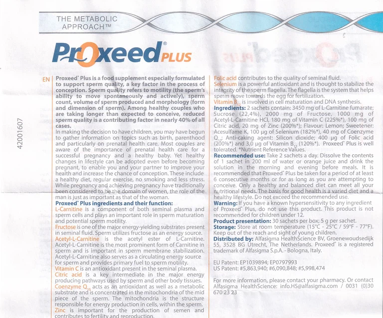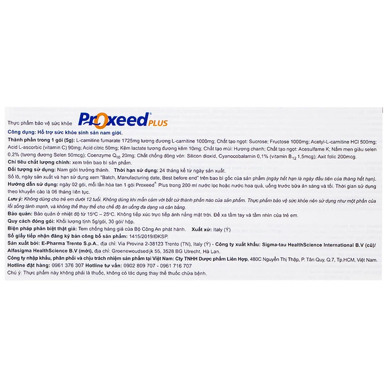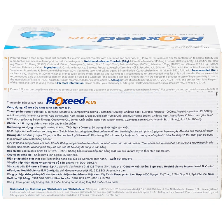 Proxeed Plus là sản phẩm dinh dưỡng với sự kết hợp cộng hưởng của các thành phần có lợi cho tinh trùng của nam giới, từ đó tăng cường khả năng thụ thai. Sản phẩm đã được chứng minh lâm sàng về tính an toàn và hiệu quả cũng như được tin tưởng sử dụng tại hơn 40 nước trên thế giới.