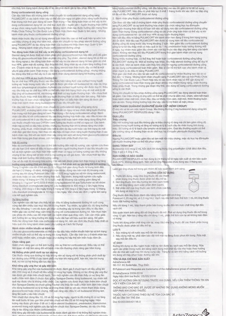 - Việc điều trị phải tiếp tục ít nhất 1 tháng trước khi xác định sự đáp ứng tối đa với liều Pulmicort được sử dụng.
