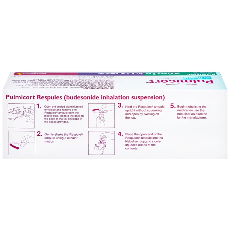 Đặt phần mở của ống thuốc vào bình chứa của máy khí dung và bóp từ từ. Ống thuốc đơn liều được đánh dấu bằng một vạch (chỉ có ở ống Pulmicort 0,25 mg/ml và 0,5 mg/ml). Vạch này cho biết mức thể tích 1ml khi ống thuốc được đặt hướng xuống.