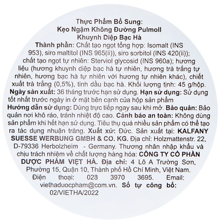 Thành phần của Kẹo ngậm không đường Pulmoll