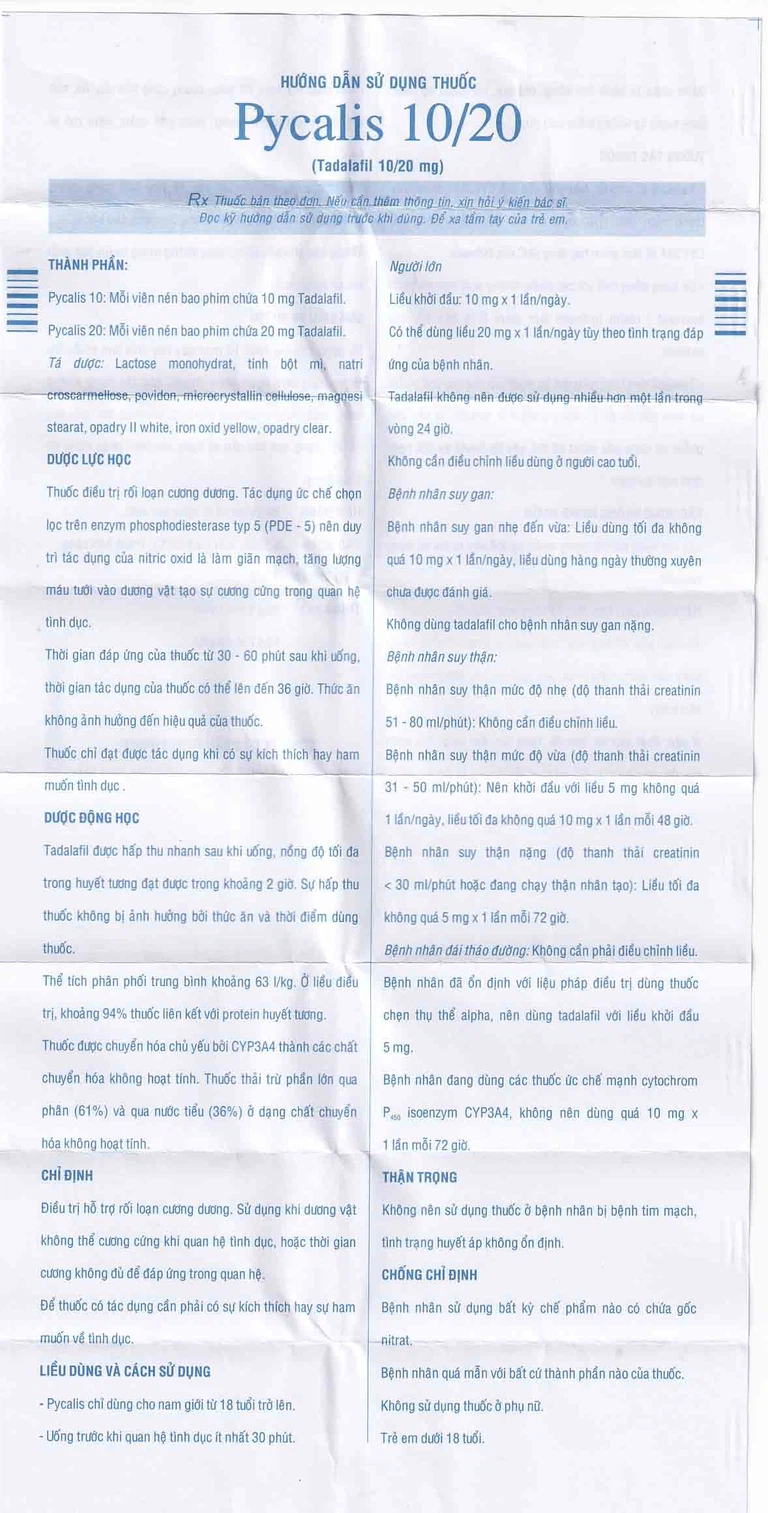 Thuốc Pycalis 20 mguống trước khi quan hệ tình dục ít nhất 30 phút.