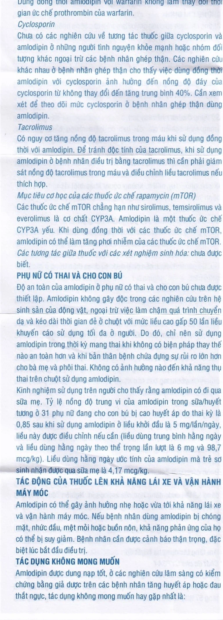 Amlodipin có thể gây ảnh hưởng nhẹ hoặc vừa tới khả năng lái xe và vận hành máy móc.
