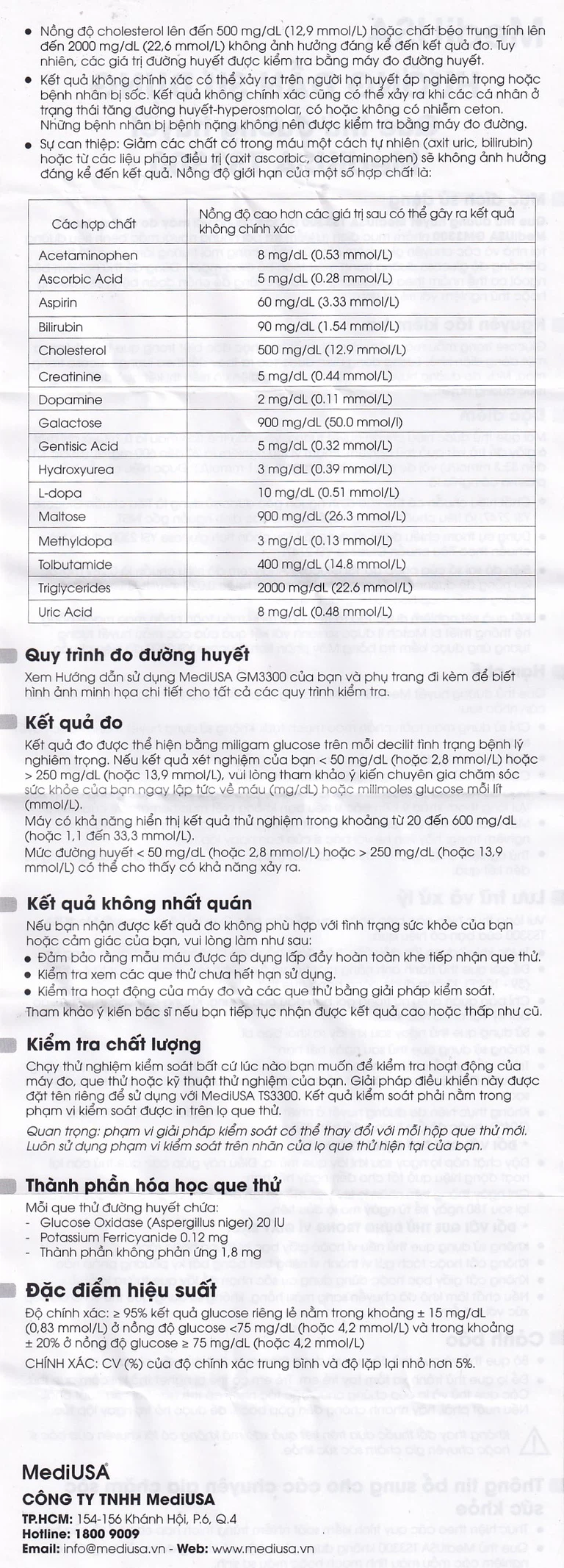 Dùng cùng máy đo đường huyết MediUsa GM3300 để kiểm tra nồng độ đường trong máu