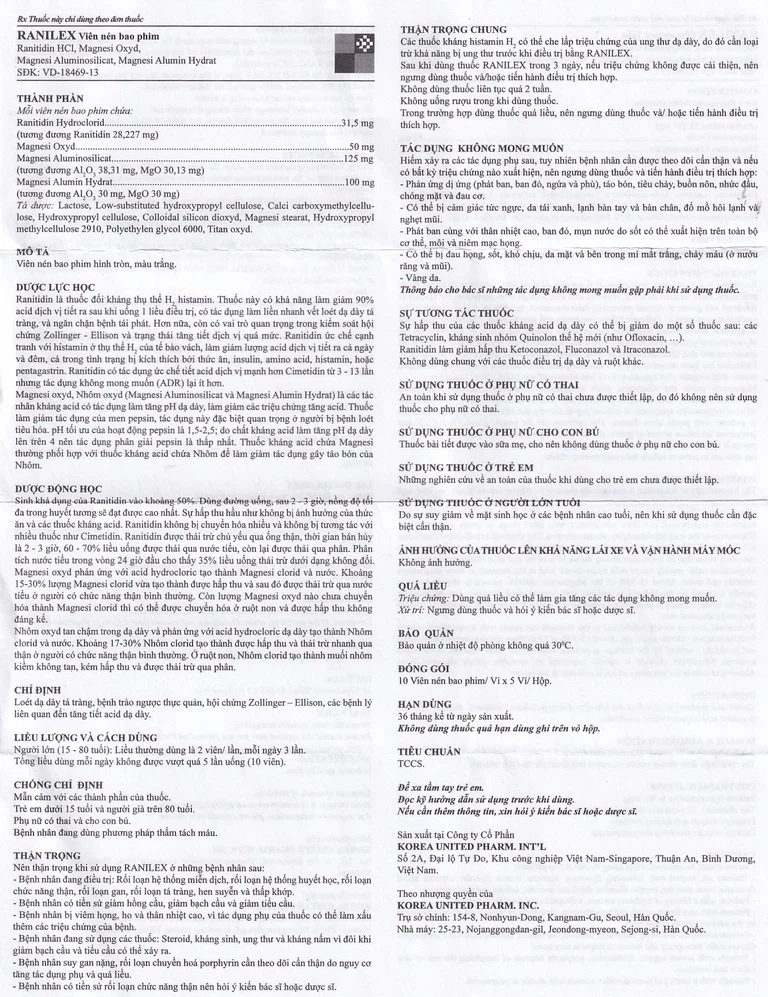 Ranitidin là thuốc đối kháng thụ thể H2, histamin. Thuốc này có khả năng làm giảm 90% acid dịch vị tiết ra sau khi uống 1 liều điều trị, có tác dụng làm liền nhanh vết loét dạ dày tá tràng và ngăn chặn bệnh tái phát. Hơn nữa, còn có vai trò quan trọng trong kiểm soát hội chứng Zollinger – Ellison và trạng thái tăng tiết dịch vị quá mức.