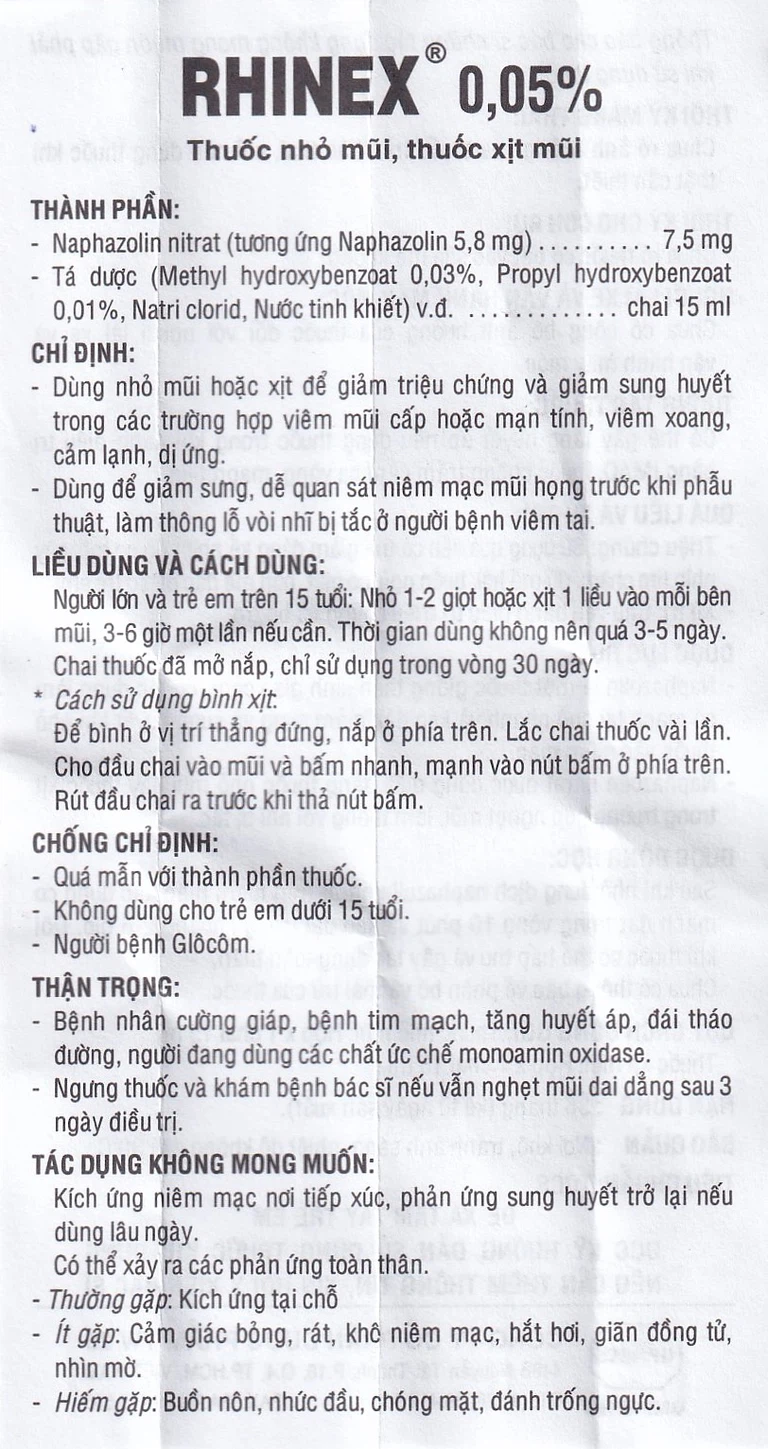 Cách dùng Thuốc nhỏ mũi Rhinex 0.05%