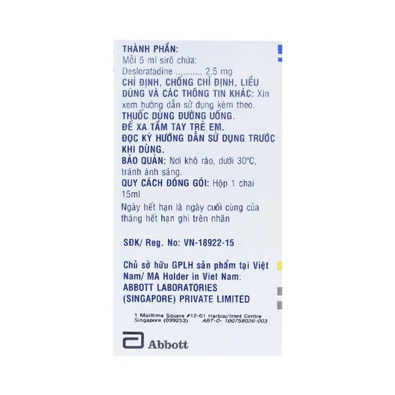 Dùng cho trẻ em: Tính an toàn và hiệu quả của sirô desloratadin ở trẻ em dưới 6 tháng tuổi chưa được thiết lập.