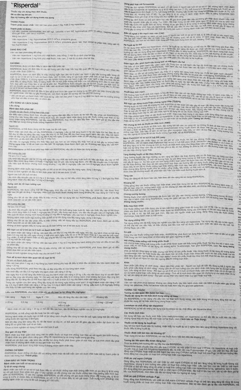 - Risperdal cũng được chỉ định điều trị các đợt hưng cảm cấp hoặc hỗn hợp liên quan đến rối loạn lưỡng cực I (theo tiêu chuẩn chẩn đoán DSM IV).