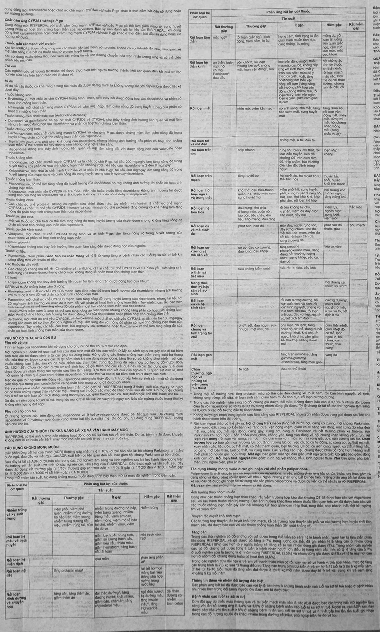 c: Không ghi nhận trong nghiên cứu lâm sàng của Risperdal nhưng ghi nhận được trong giai đoạn sau khi đưa thuốc ra thị trường với risperidone.