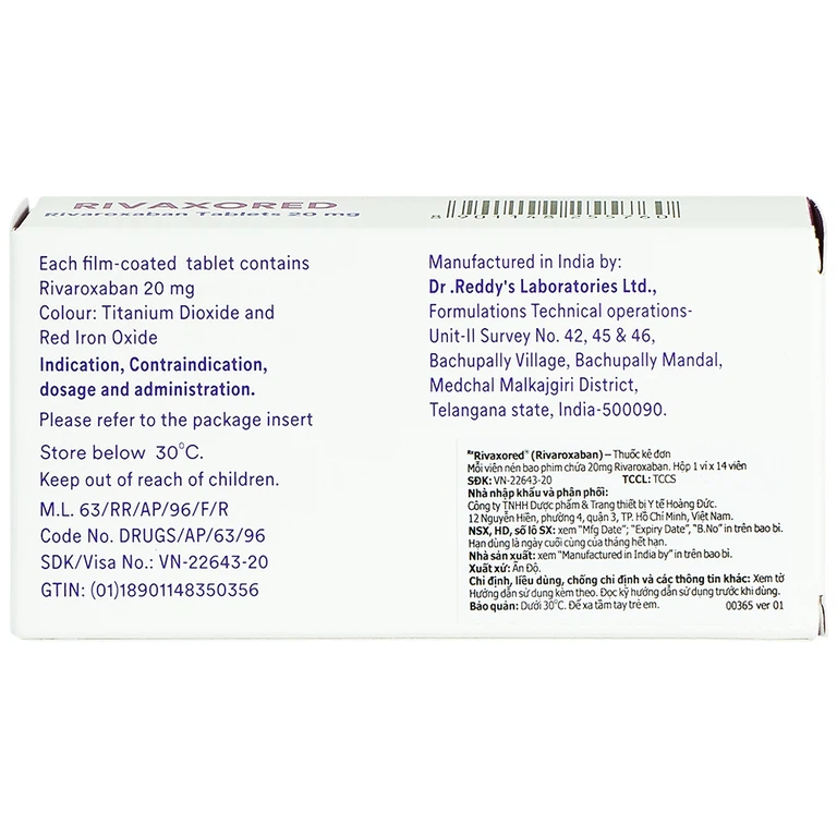 Thuốc Rivaxored 20mg dùng qua đường uống.