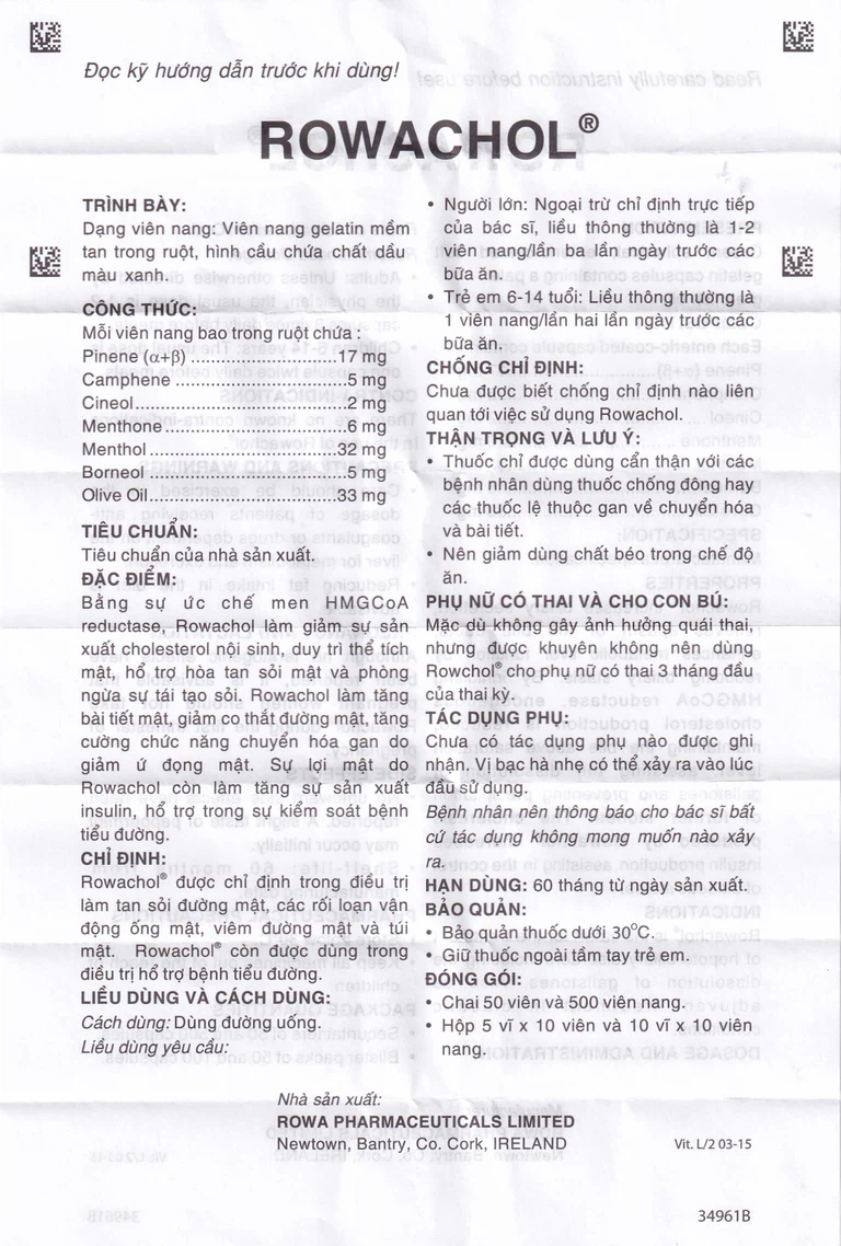 Rowachol làm tăng bài tiết mật, giảm co thắt đường mật tăng cường chức năng chuyển hoá gan do giảm ứ đọng mật. Sự lợi mật do Rowachol còn làm tăng sự sản xuất insulin, hỗ trợ trong sự kiểm soát bệnh đái tháo đường .