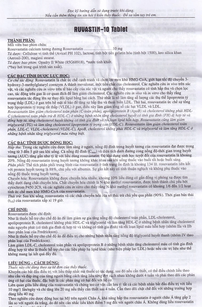 Thuốc Ruvastin – 10được chỉ định dùng trong các trường hợp sau: