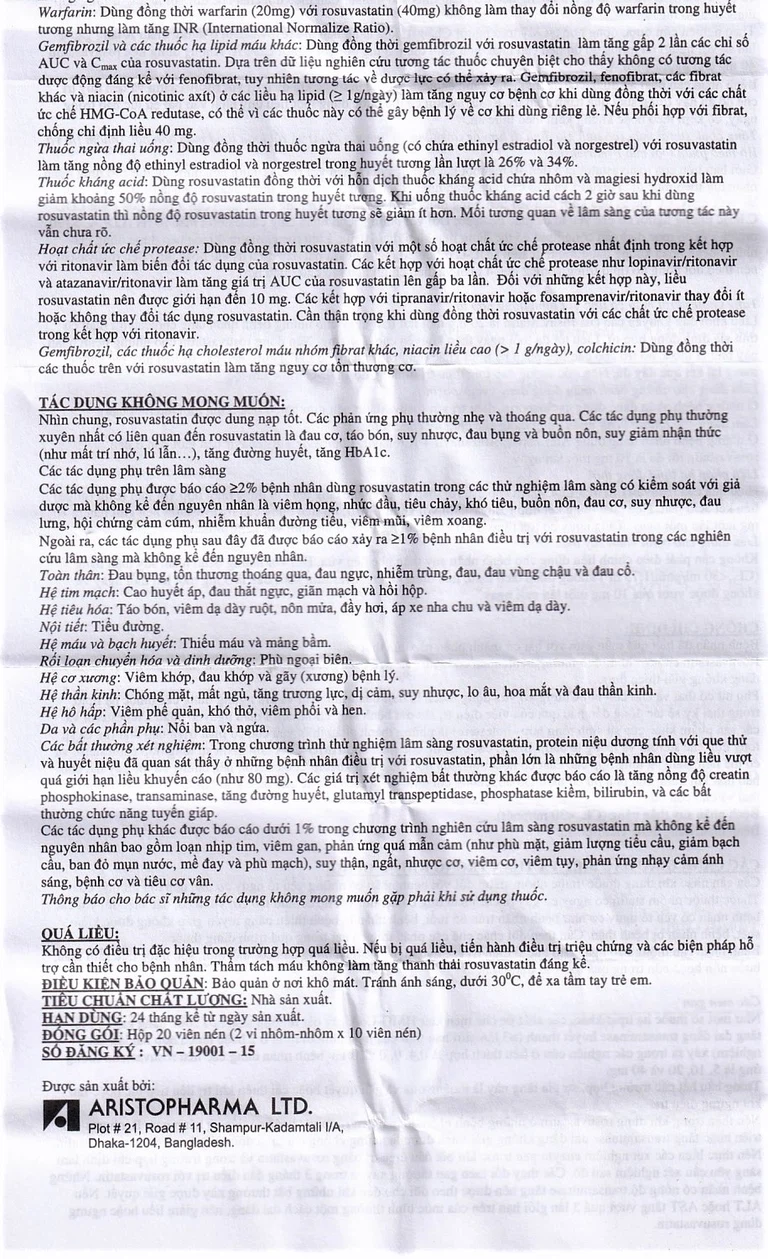 - Warfarin: Dùng đồng thời warfarin (20 mg) với rosuvastatin (40 mg) không làm thay đổi nồng độ warfarin trong huyết tương nhưng làm tăng INR (International Normalize Ratio).