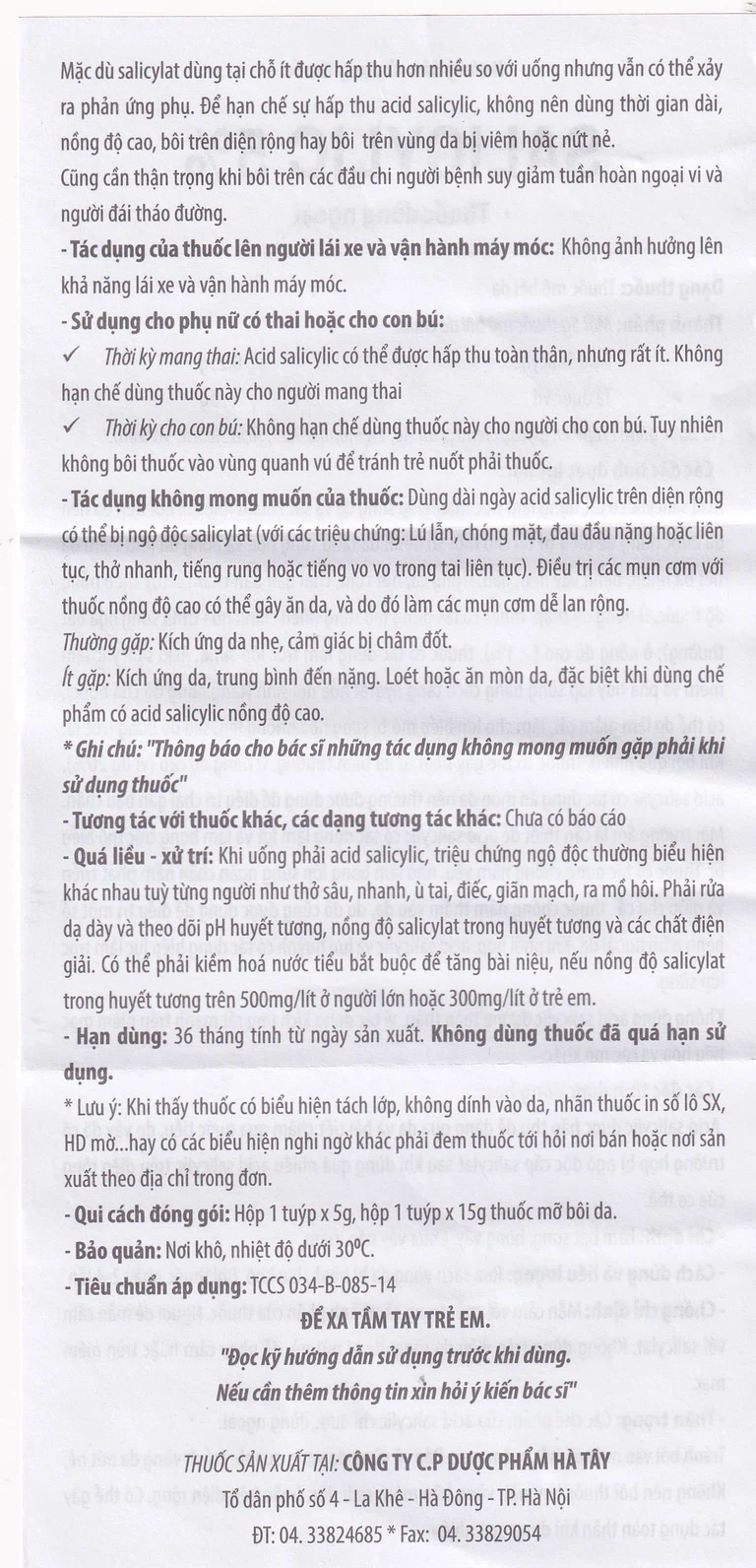 Thuốc mỡ bôi da Salicylic 5% Hataphar làm bạt sừng, bong vẩy (15g)